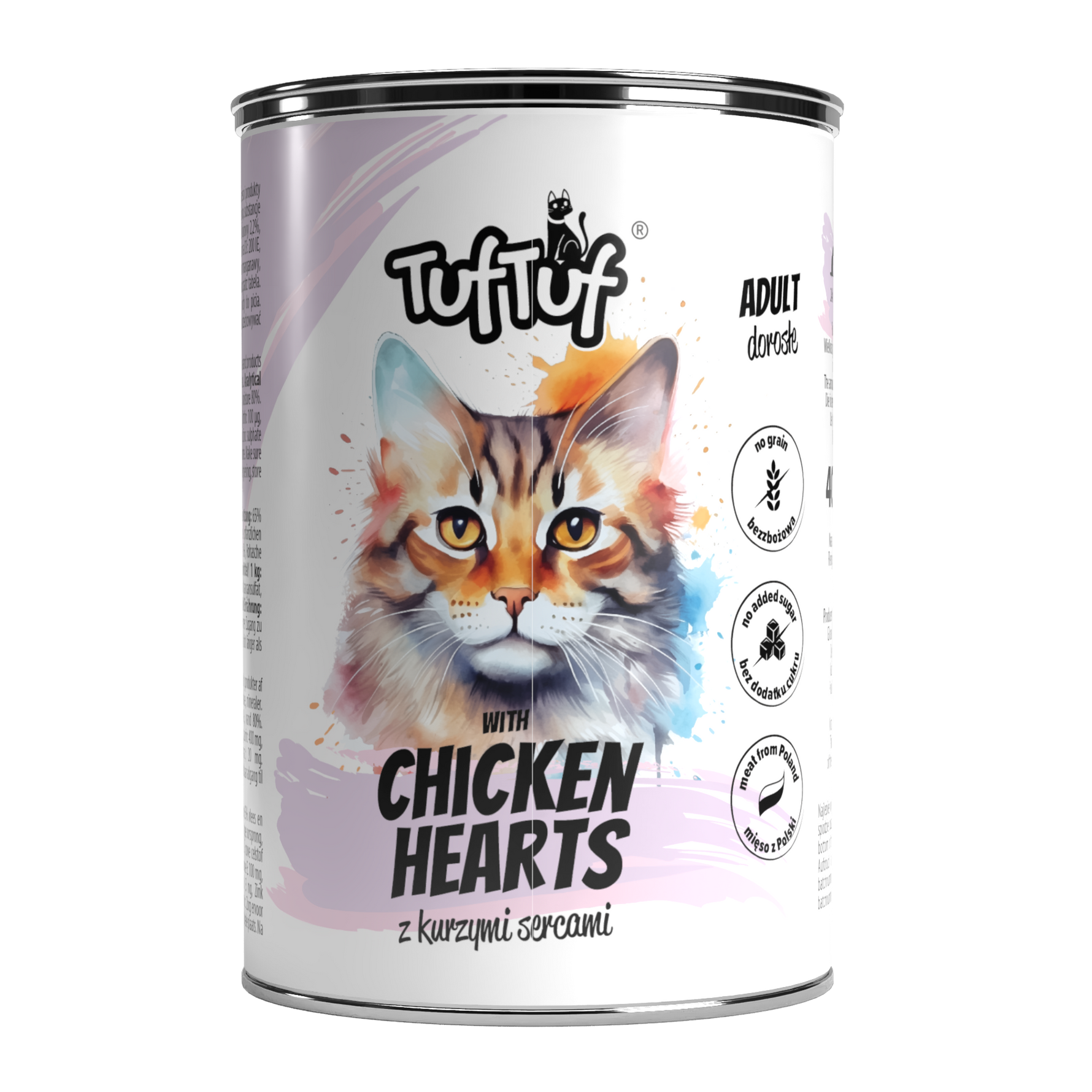 Puszka mielonka z kurzymi sercami – karma mokra pełnoporcjowa dla kota | TUF TUF