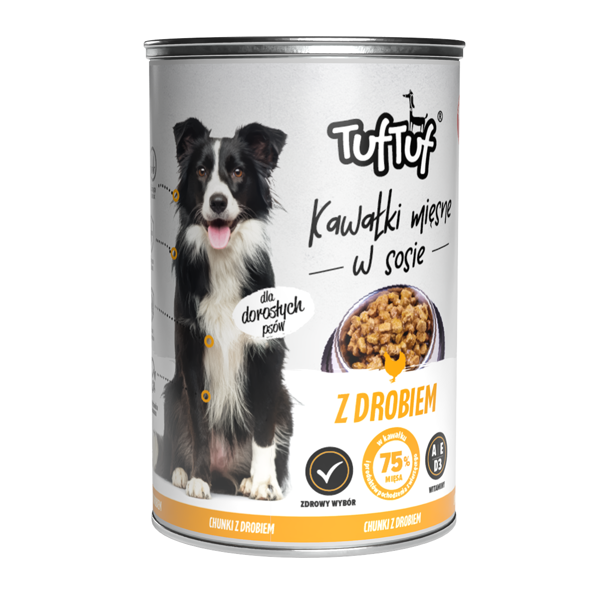 Kawałki mięsne z drobiem dla psa – karma mokra pełnoporcjowa | TUF TUF